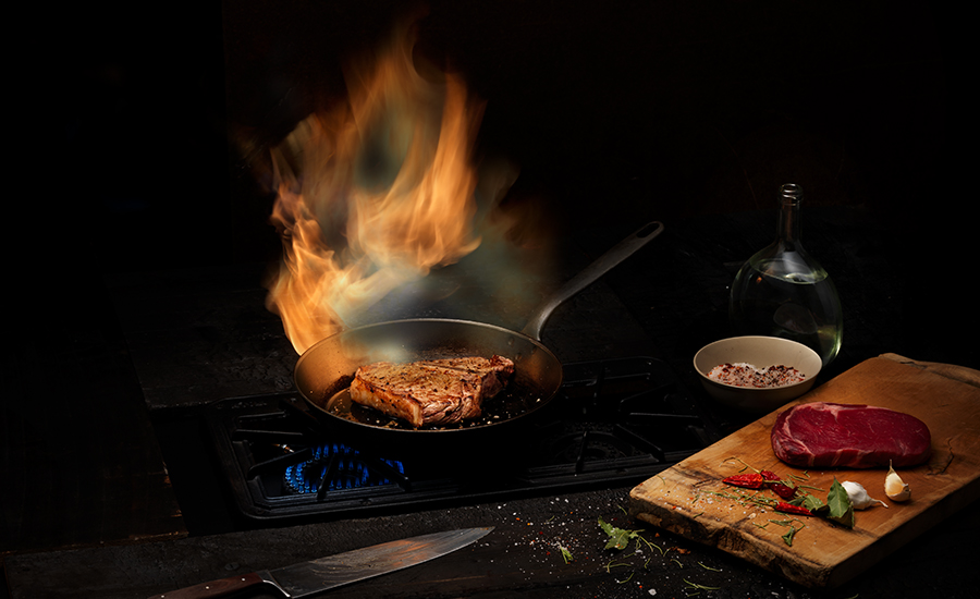 Bevor das Fleisch in die Pfanne kommt, muss diese genügend vorgeheizt werden. Bei unbeschichteten Bratpfannen kann man mit ein paar Spritzern kaltem Wasser testen, ob die Pfanne genügend heiss ist. Bilden sich aus den Wassertropfen kleine «Kügelchen», die in der Pfanne herumhüpfen, ist die ideale Brat-Temperatur erreicht. Vorsicht ist bei beschichteten Bratpfannen geboten. Werden diese ohne Gargut zu stark erhitzt, kann die Beschichtung Schaden nehmen.