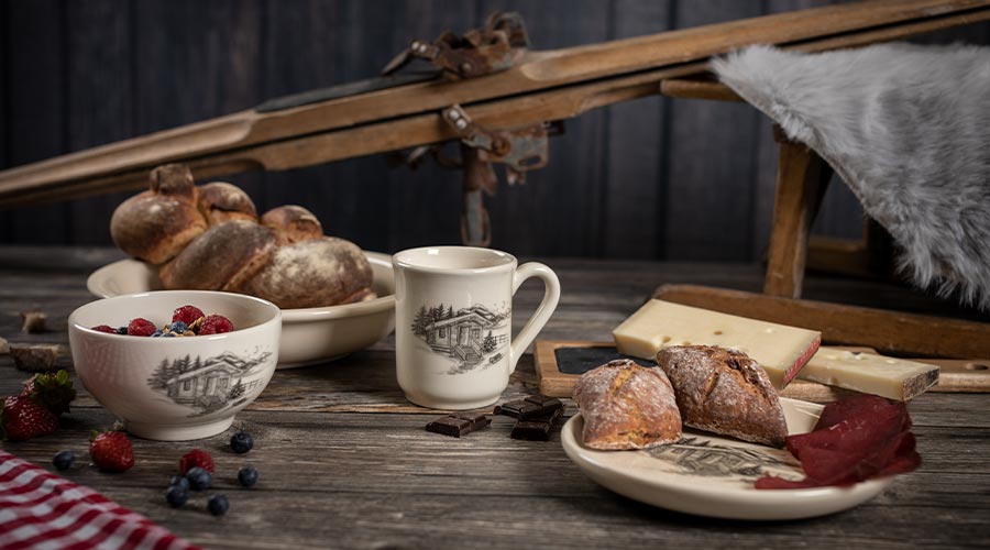 Geniessen Sie den einzigartigen Alpencharme nicht nur beim Fondue-Plausch. Egal ob Frühstück, Bündner-Plättli oder Tea Time - mit der einheitlichen Chalet-Geschirrlinie verzaubern Sie jede Mahlzeit in einen heimeligen Moment mit Schweizer Chalet-Chic.