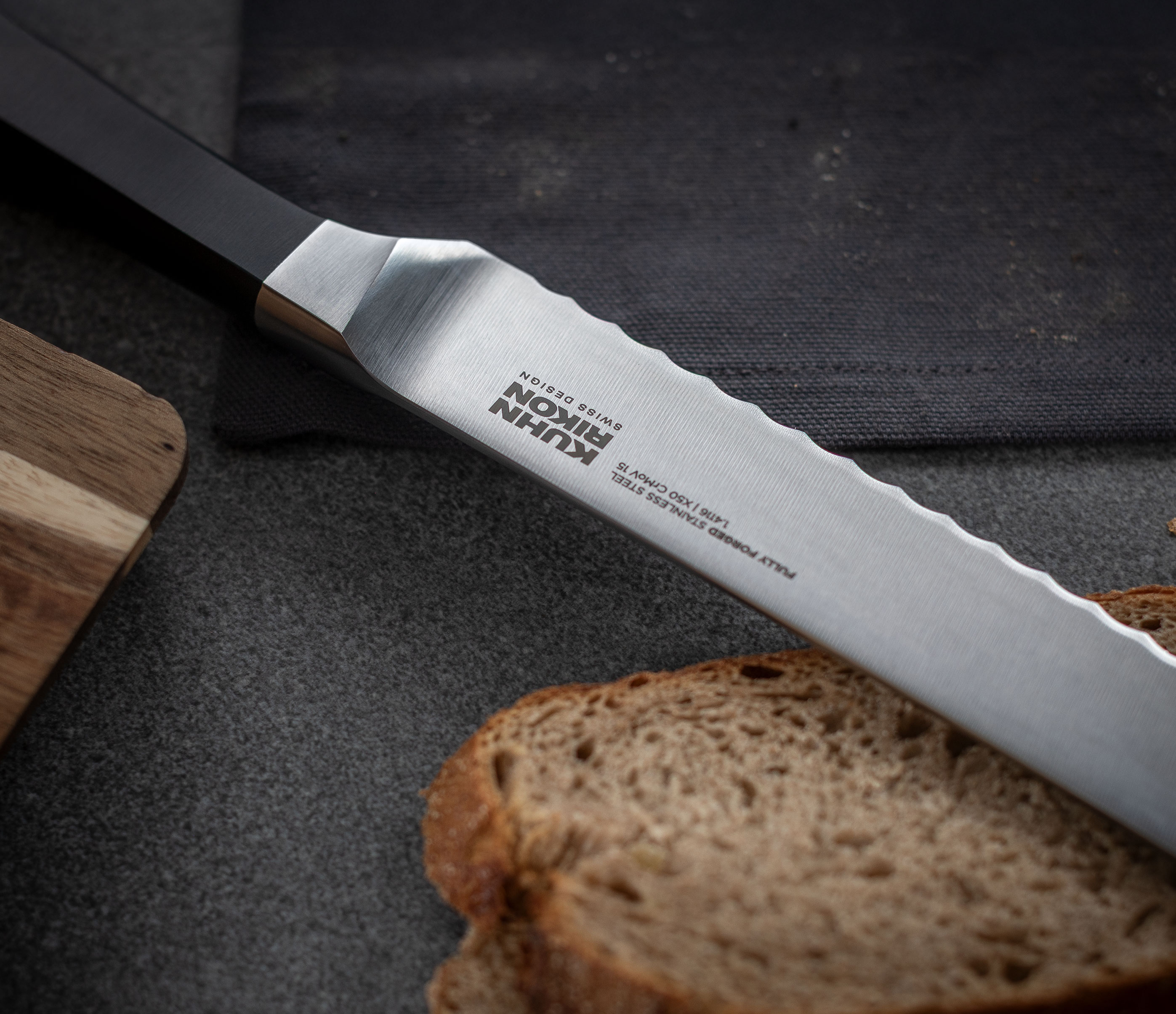 Die lange Klinge gleitet mühelos und gleichmässig durch Krusten, ohne das Brot zu zerdrücken.