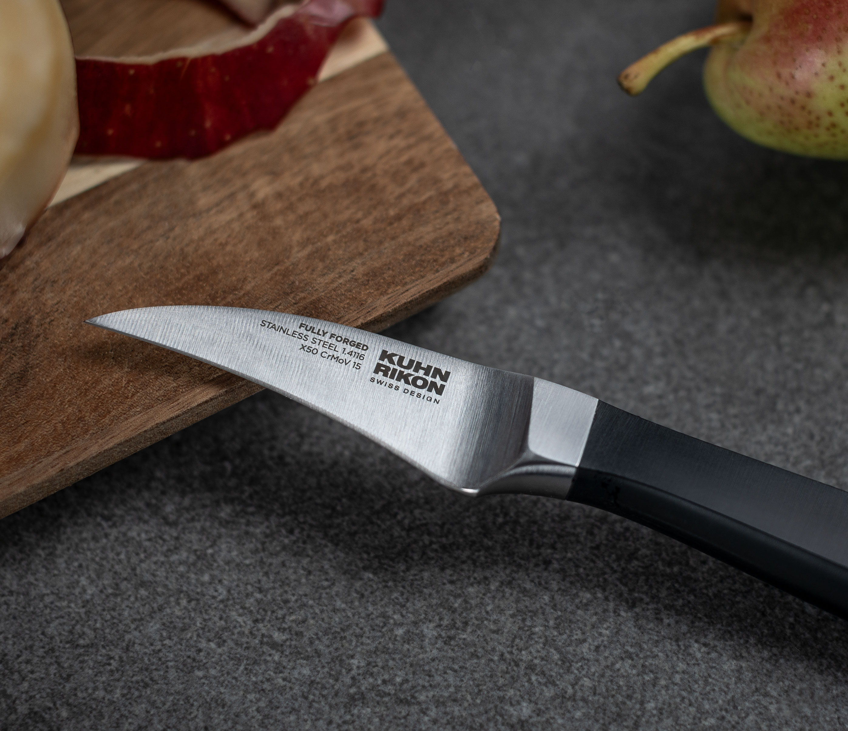 Dank der kurzen gebogenen Klinge perfekt zum Schälen oder dekorativen Schneiden.
