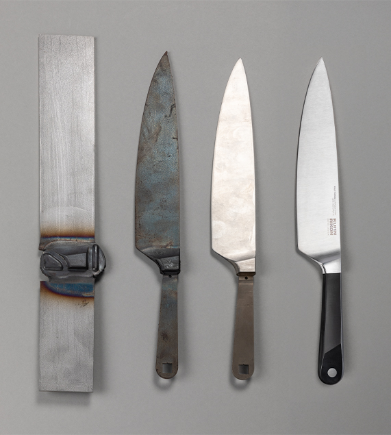 Jedes CULINARY FORGED Messer wird aus einem einzigen Stück Stahl in Portugal geschmiedet. Für spürbare Stabilität, starke Präzision und einen Griff, der sich wie eins mit der Klinge anfühlt.