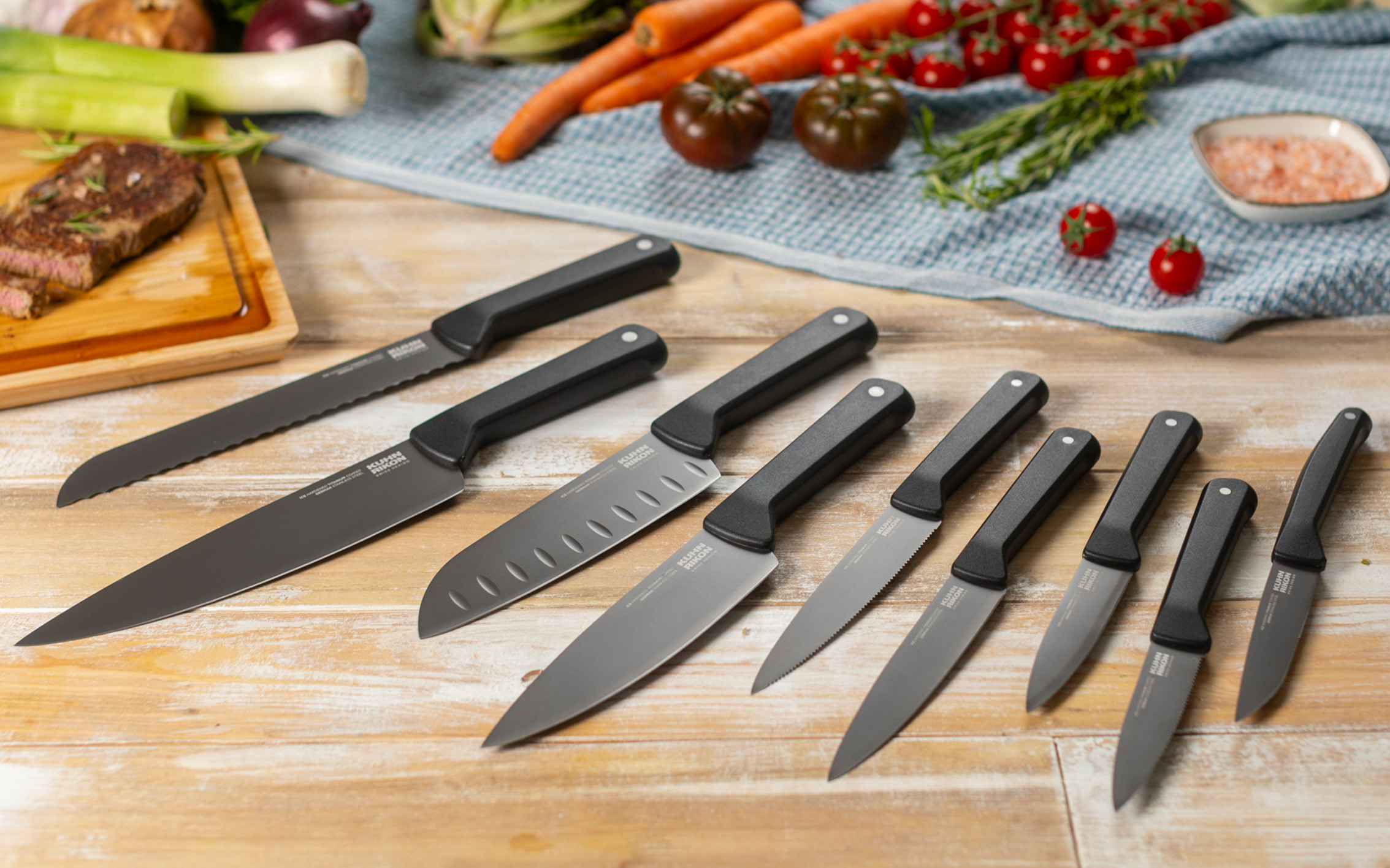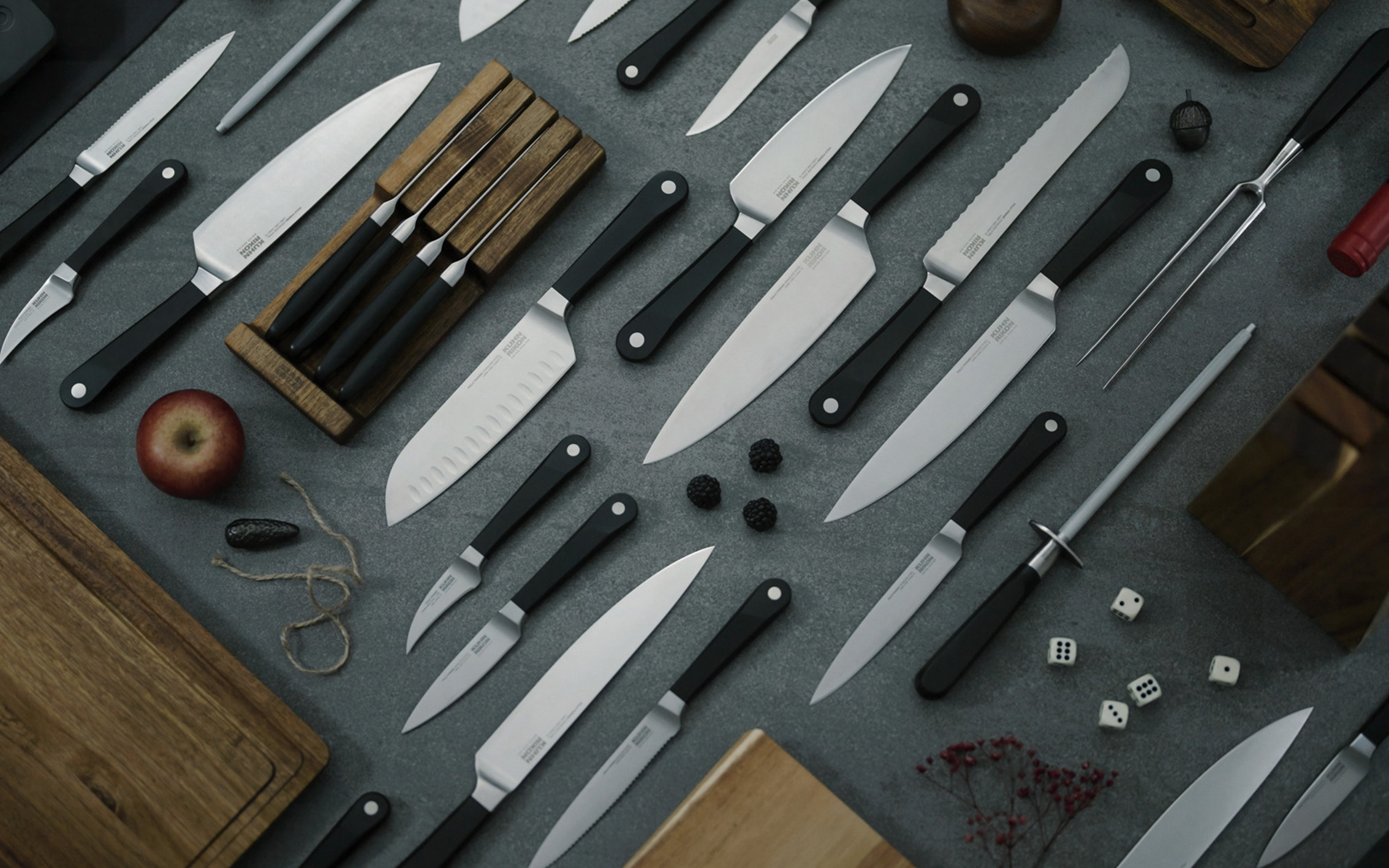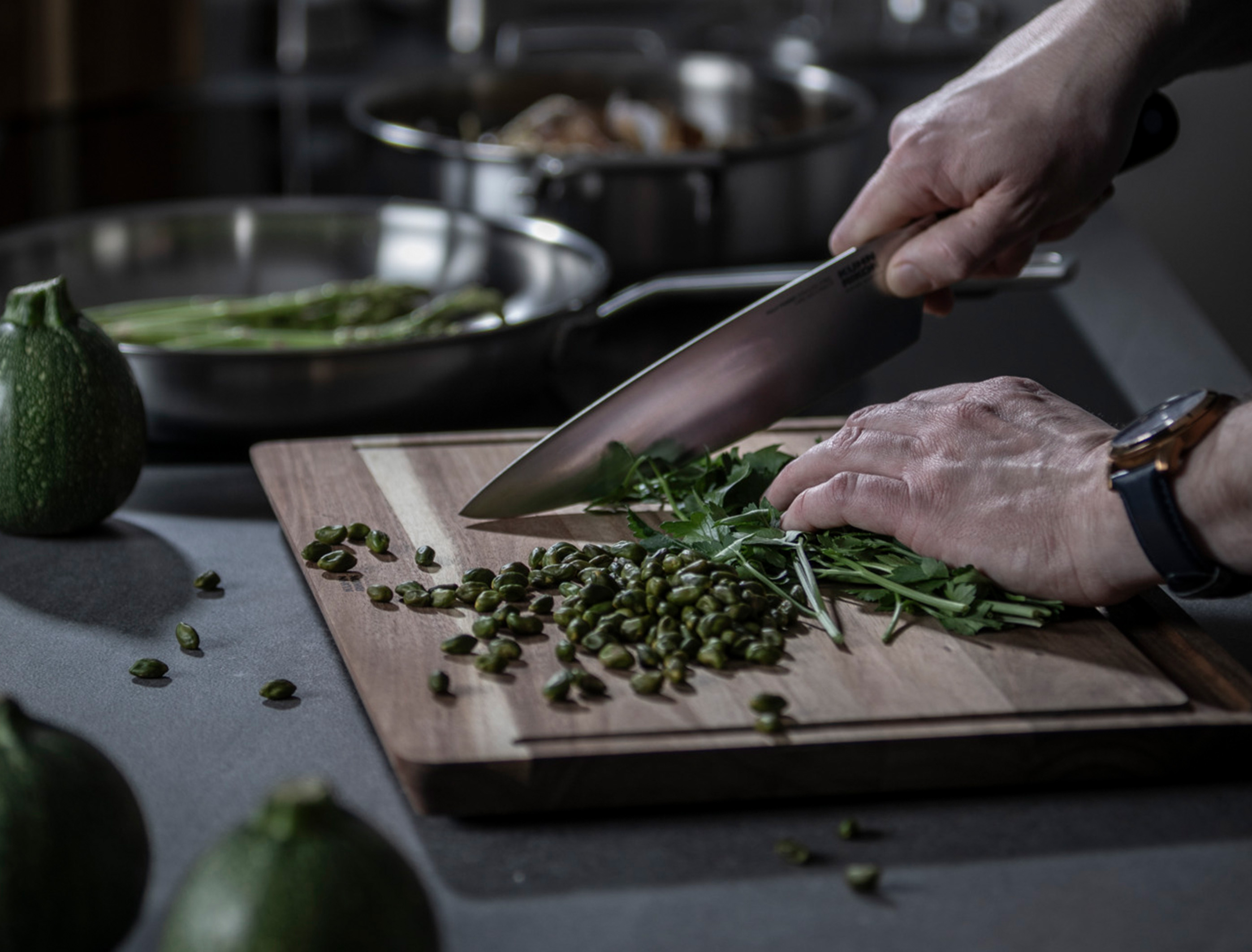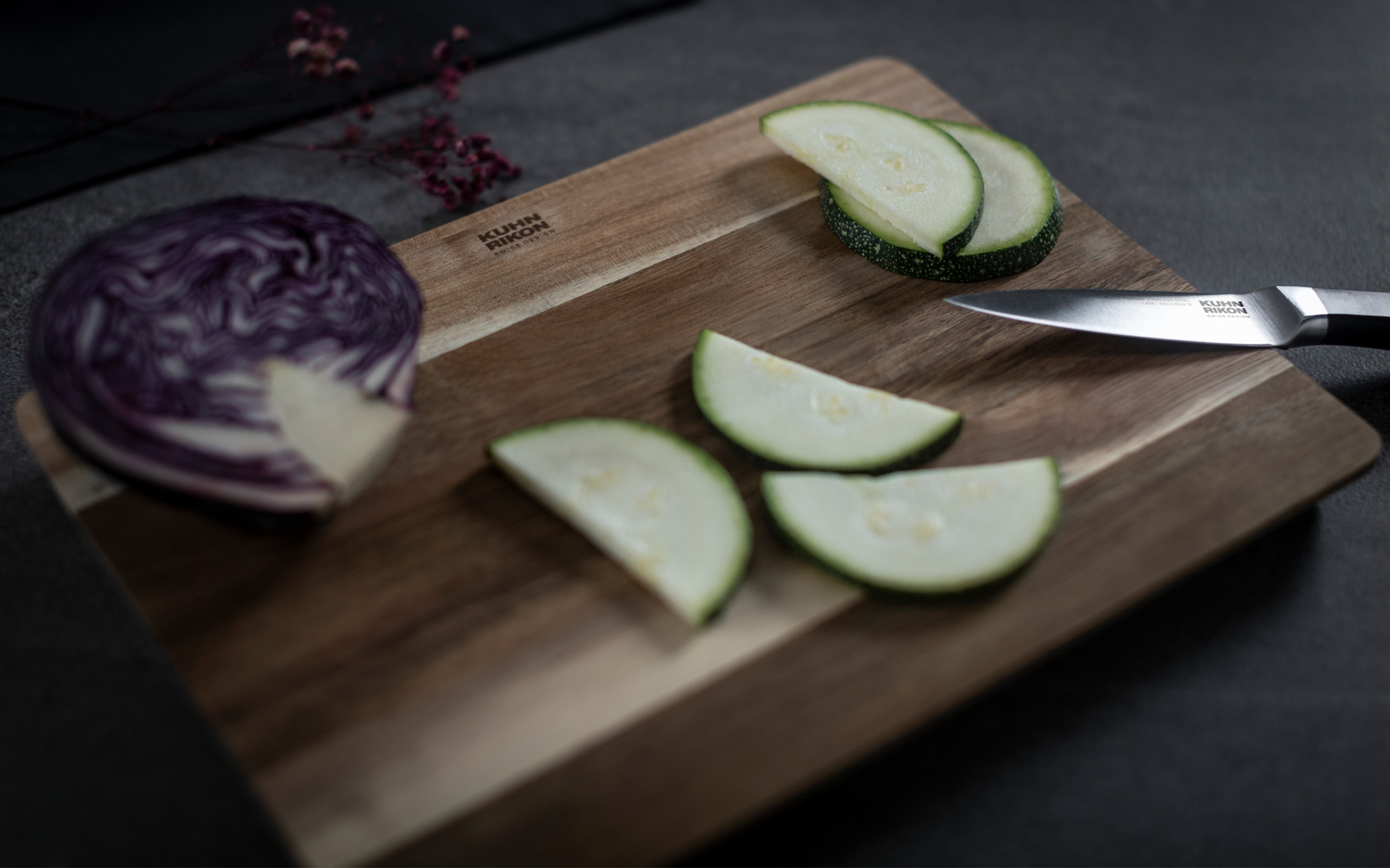 Der kraftvolle Allrounder für Gemüse, Fleisch und Fisch. Passt dank zwei Grössen in jede Hand.