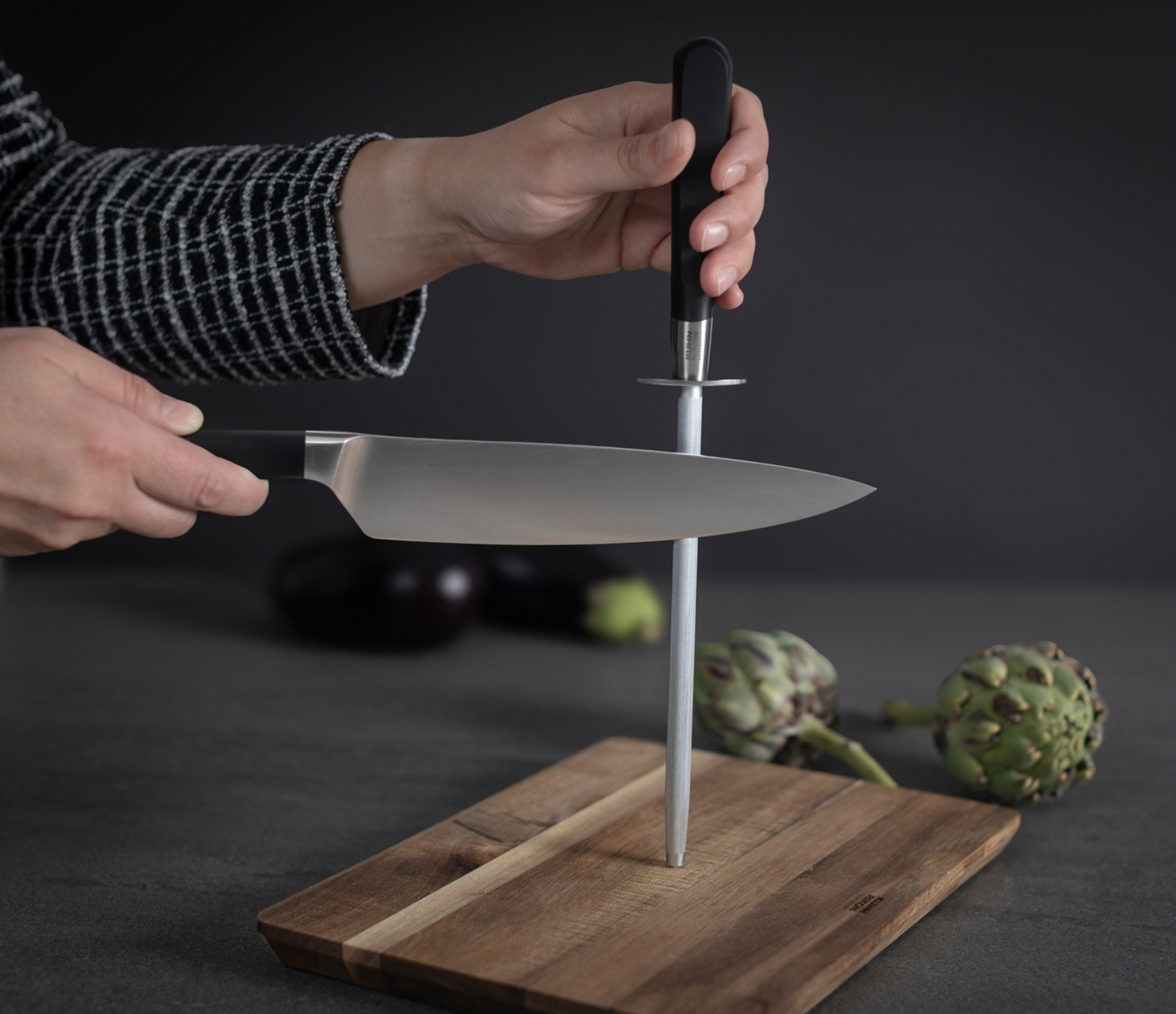 Er ist einfacher zu nutzen, als viele denken. Und er sorgt dafür, dass Ihnen Ihre CULINARY FORGED Messer jahrelang Freude bereiten. Deshalb darf der Wetzstahl in Ihrem Messersortiment nicht fehlen. Wir erklären Ihnen, wie Sie ihn richtig verwenden.