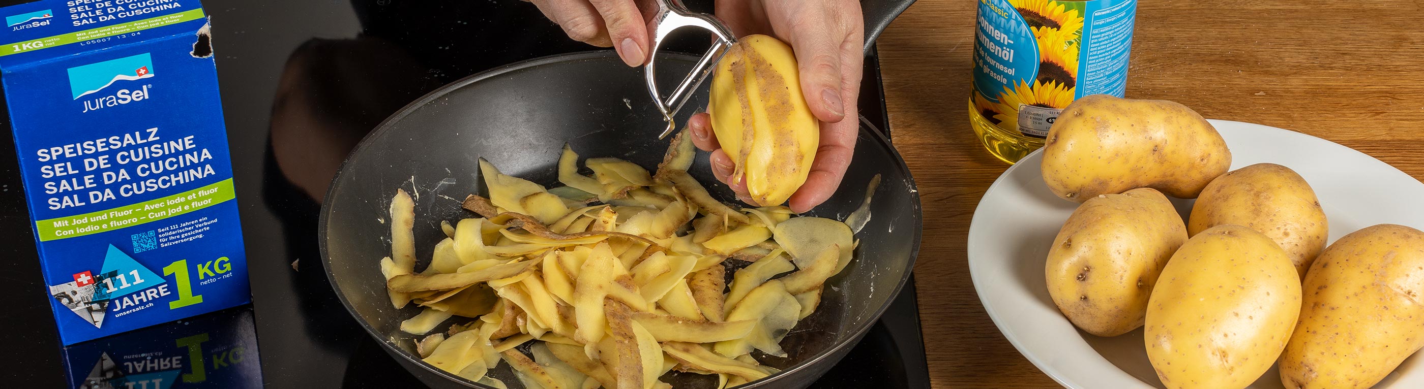 6. + 7. Kartoffeln, Salz und Öl entsorgen