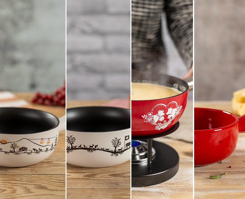 Ob klassisch in Rot, mit Appenzell-Dekor oder neuem Gondelmotiv: Diese Caquelons bringen die Schweizer Berge auf den Tisch. Mit charmanten Designs und attraktivem Preis überzeugen sie in geselligen Runden – und im Verkaufsgespräch.
