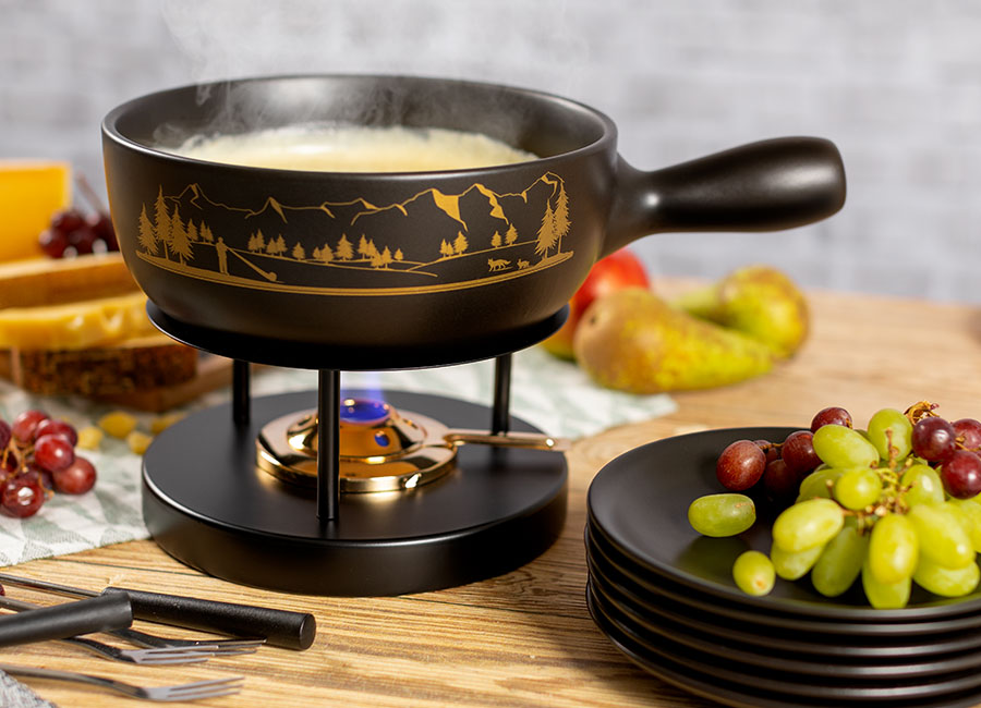 KÄSEFONDUE SET ALPENPANORAMA SCHWARZ · Ø 23 CM