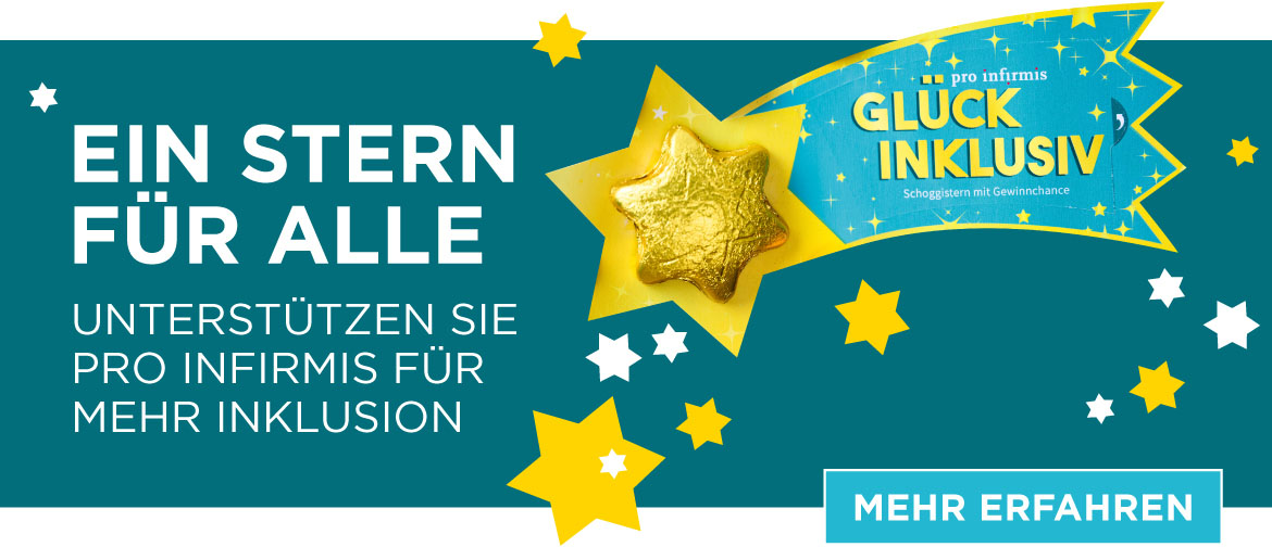 Machen Sie die Weihnachtszeit noch bedeutungsvoller! Mit jedem gekauften Schoggistern unterstützen Sie Pro Infirmis und leisten einen wichtigen Beitrag für mehr Inklusion. Dabei geht der gesamte Erlös direkt an Pro Infirmis.