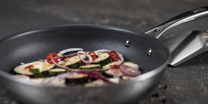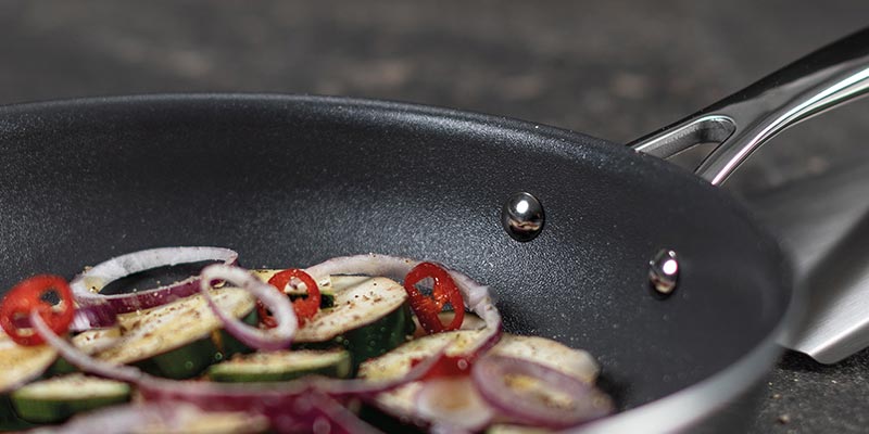 Die Beschichtung ist kratzfest und extrem widerstandsfähig, damit mit Pfannenwendern aus Edelstahl gekocht werden kann.