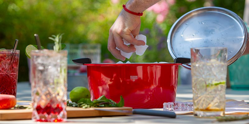 Über Gurke, Limette oder Zitrone scheiden sich die Geister. In einer Sache sind sich aber alle einig: Kein Gin Tonic ohne Eis! Doch den Eis-Vorrat zu lagern, ist oft schwierig. Nicht mehr mit dem HOTPAN®! Einfach Eiswürfel in den HOTPAN® geben, Deckel drauf und für jeden Drink frisches Eis zur Hand haben. Den nächsten, bitte!
