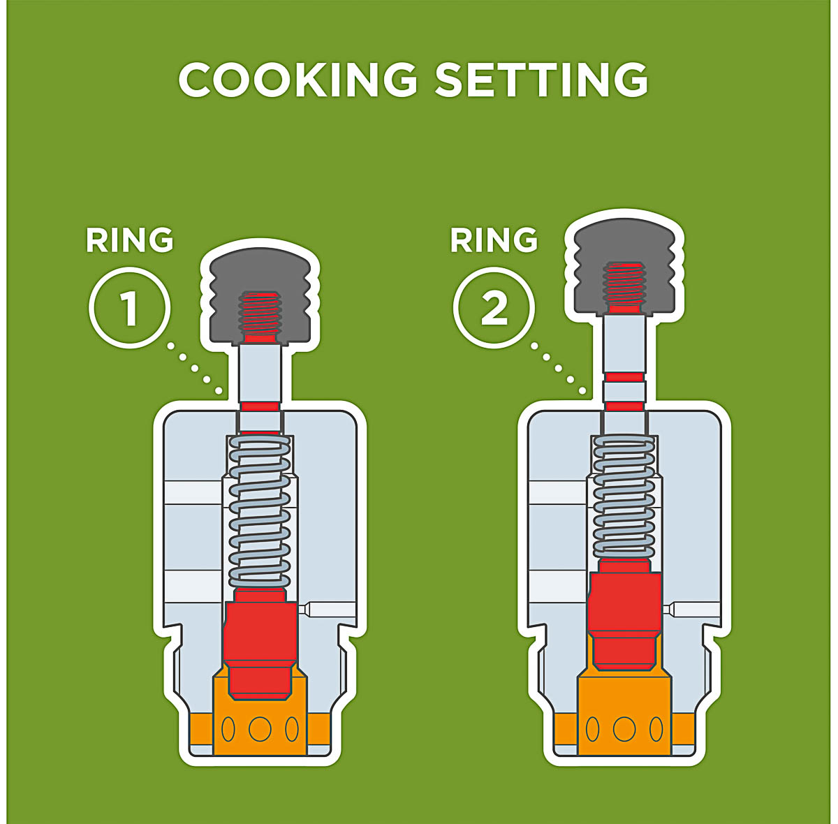 4. Second red ring appears: 2. Cooking setting reached (approx. 117 °C)