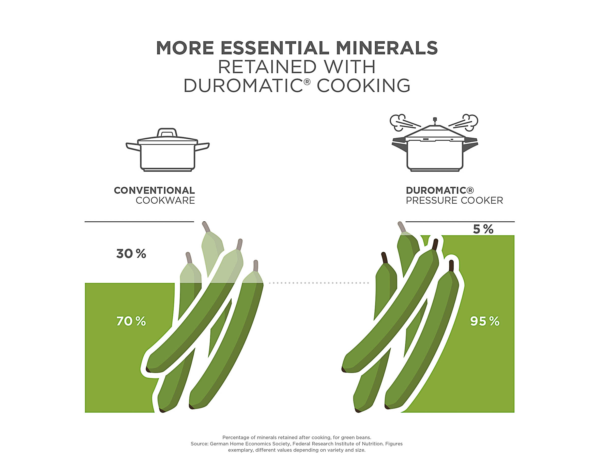 Stiftung Warentest also shows this: Steam cooking preserves around 36% more minerals in green beans than conventional cooking. So you get more of what really matters.