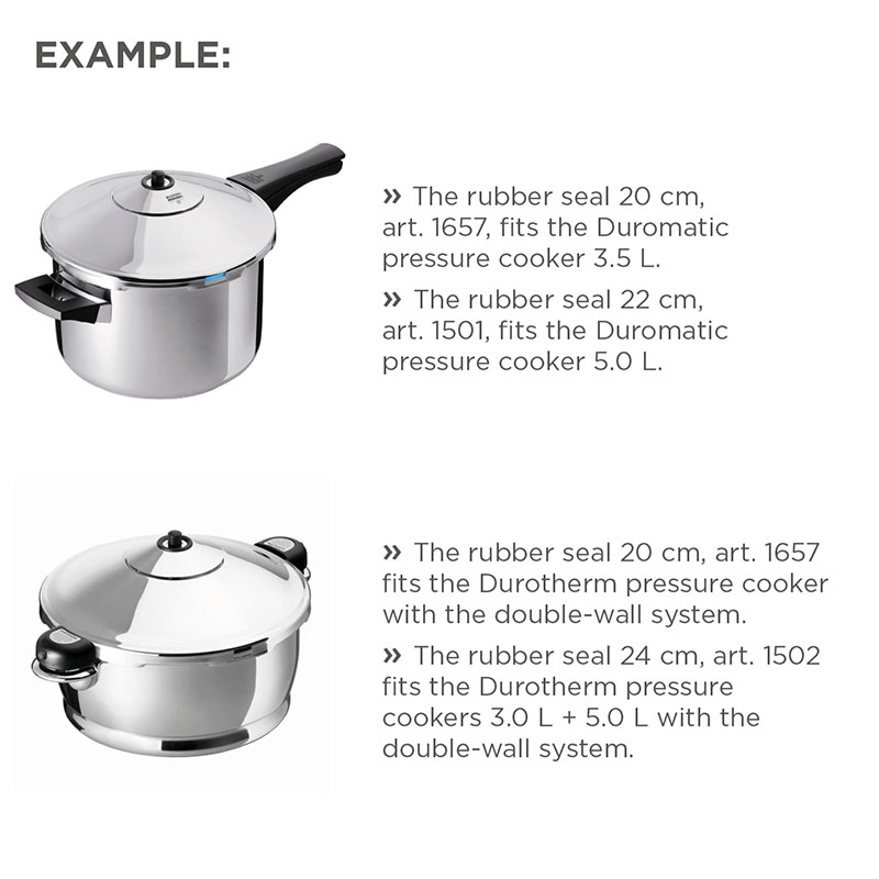 In our laboratory we have ascertained that one can cook over 11,500 times with the DUROMATIC® and the rubber seal still does not have to be replaced. But time is not on the rubber seal’s side. Rubber becomes brittle over time and has to be replaced after 10 years at the latest.