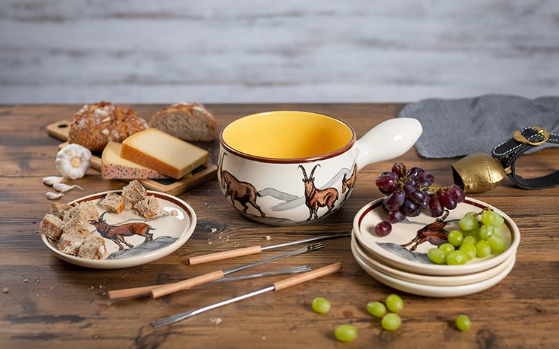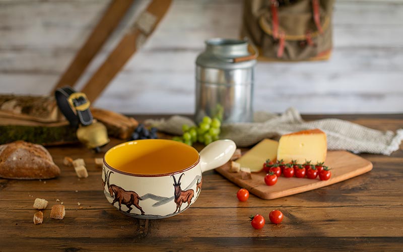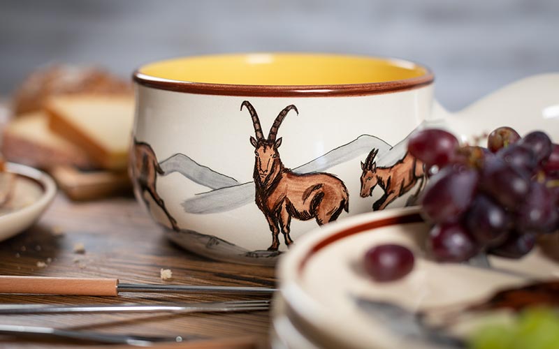 Bring the magic of the Swiss Alps directly to your table. Our ibex ceramic line combines rustic charm with perfect craftsmanship. Each piece tells a story of tradition, enjoyment and cosiness. Whether it's a hearty cheese fondue or a warming soup, our products create moments to remember.