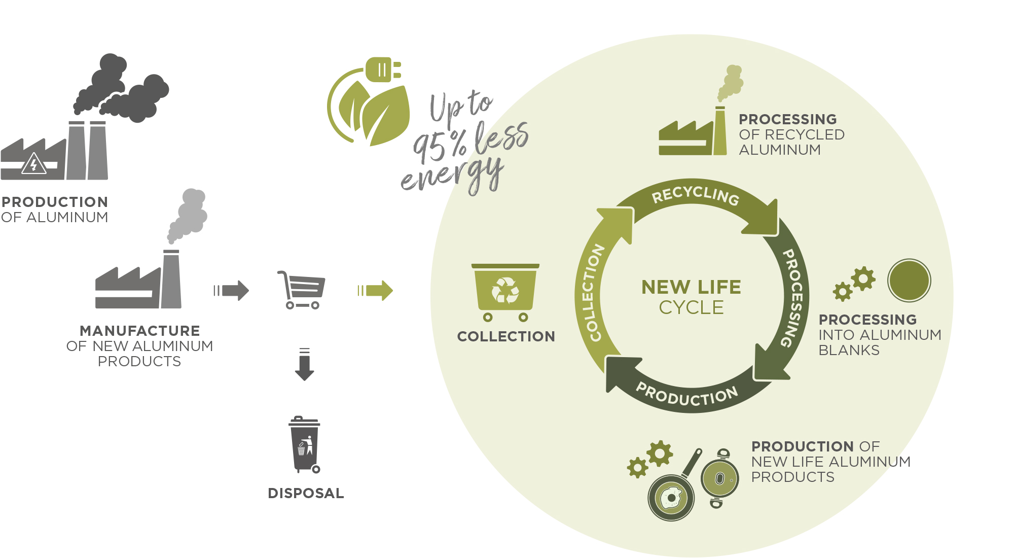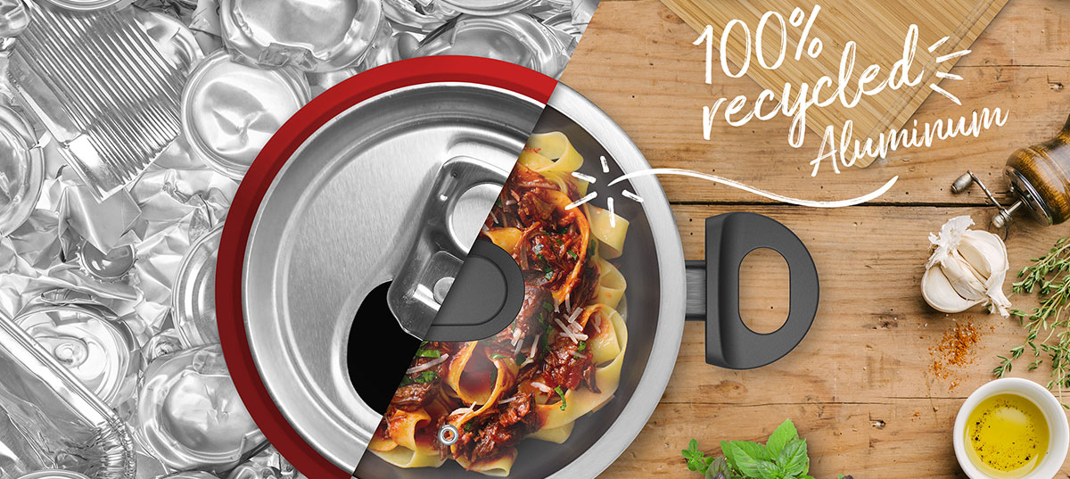 Thanks to new technology, the material we use for our NEW LIFE® Pro products is stronger and more durable than new aluminium. Our high-quality recycled aluminium is made from different aluminium alloys, which makes it much more resilient than pure aluminium. The excellent properties of our recycled aluminium also mean that the pans and dishes retain heat extremely well and distribute it evenly when cooking food.