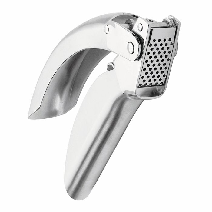Unlike other presses, our garlic press has beveled holes that finely cut the clove rather than bruising it, bringing out the best flavor. Our ergonomic handle and powerful lever makes pressing garlic effortless. Stainless steel sieve swings out for easy cleanup.