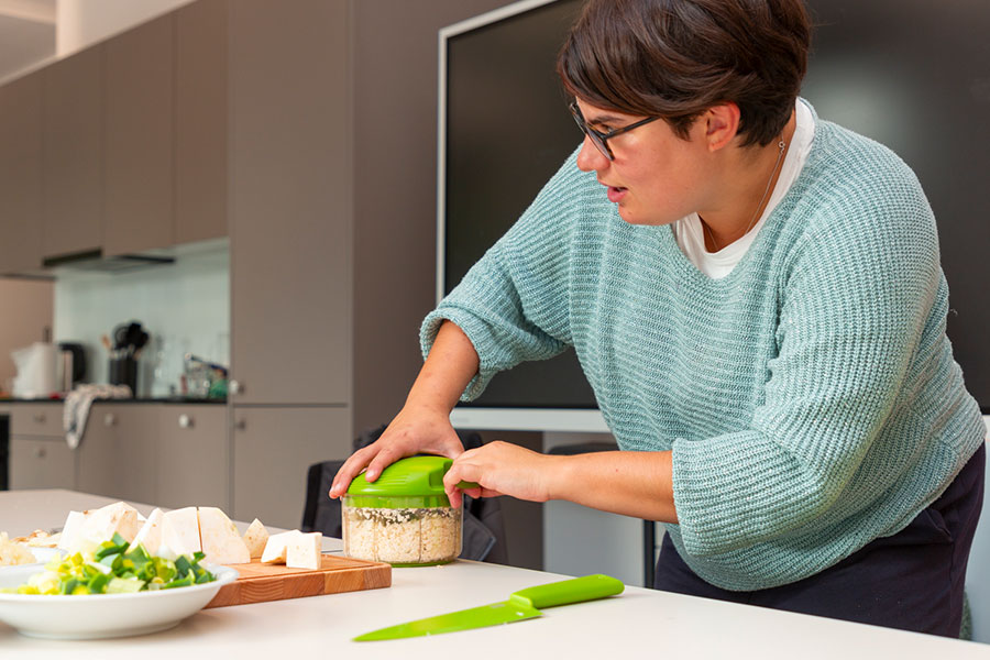 Découvrez comment cuisiner devient un plaisir pour tous ! En collaboration avec Pro Infirmis, nous faisons de la cuisine un lieu où tout le monde peut participer. Découvrez comment nos produits facilitent la cuisine et la rendent plus accessible.
