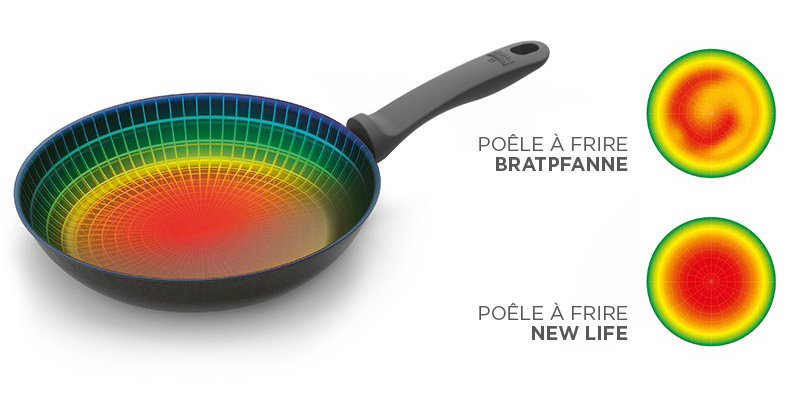Jusqu’à aujourd'hui, la plupart des produits en aluminium étaient légèrement déformables. Grâce à une nouvelle technologie, nous sommes parvenus à rendre la matière des batteries de cuisine et des poêles à frire plus solide et plus durable. Le matériau recyclé de haute qualité est plus résistant que l'aluminium pur. Venez nous rendre visite dans l'un de nos magasins et prenez l’un de nos produits NEW LIFE® en main. Il suffit de se faire une idée du poids de cette poêle pour être convaincu de sa durabilité.