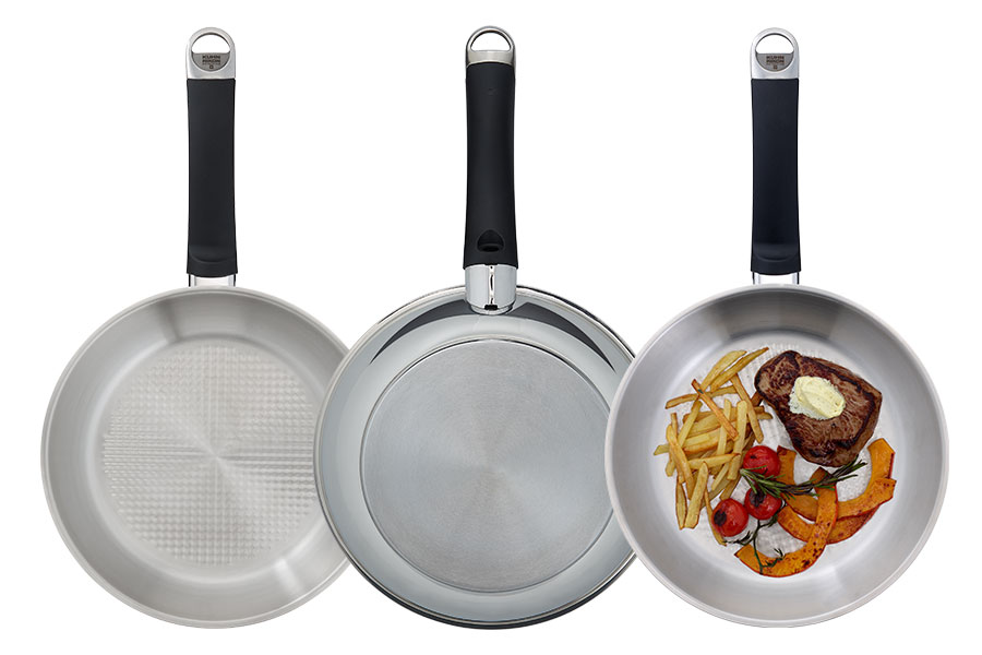 Pour les cuisiniers expérimentés, nous recommandons de cuisiner dans des poêles en acier inoxydable ou en fer non revêtues, qui ne possèdent toutefois pas de propriétés anti-adhésives et nécessitent également un peu plus de nettoyage et d'entretien.