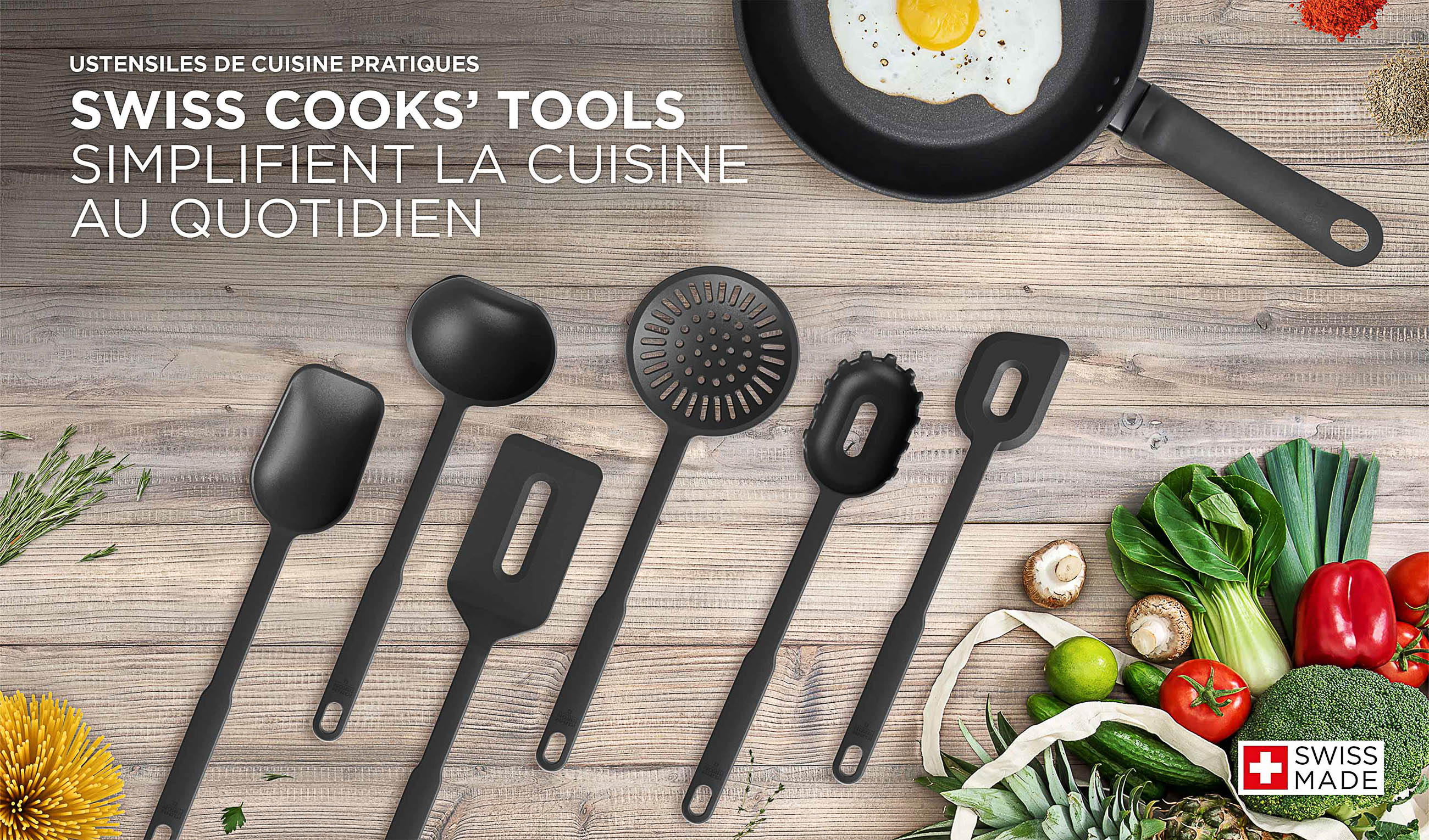 Les produits de la ligne Swiss Cooks’ Tools sont des ustensiles pratiques parfaits pour votre quotidien en cuisine. Que vous ayez besoin de retourner, mélanger, remplir ou servir, vous aurez toujours un ustensile adapté à portée de main.