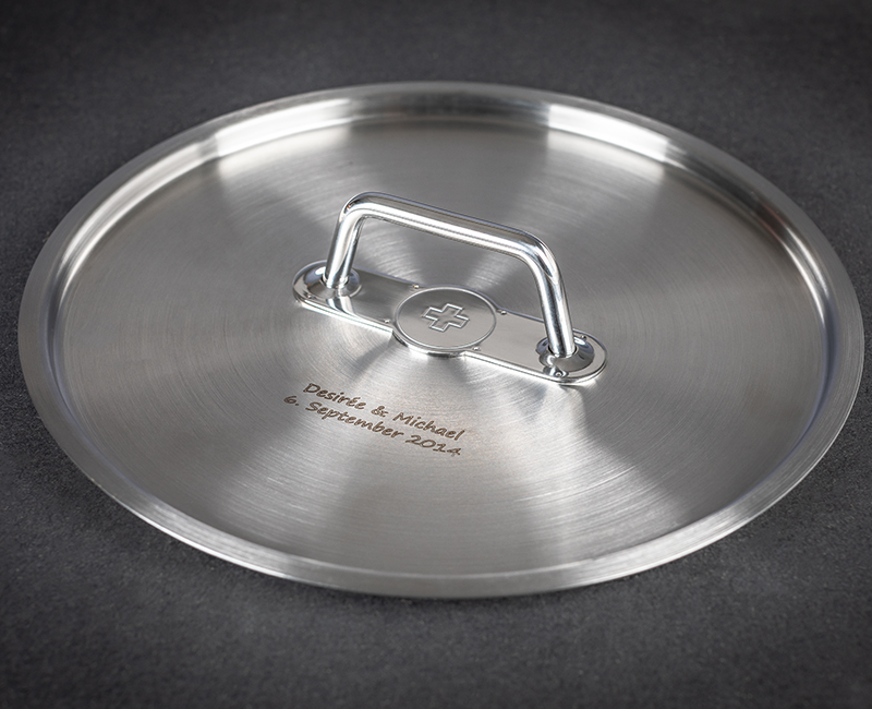 Vous pouvez commander une gravure au laser pour votre produit préféré. Le nombre de caractères possible dépend du type de produit. La gravure peut être effectuée dans 2 polices (Arial et Segoe).