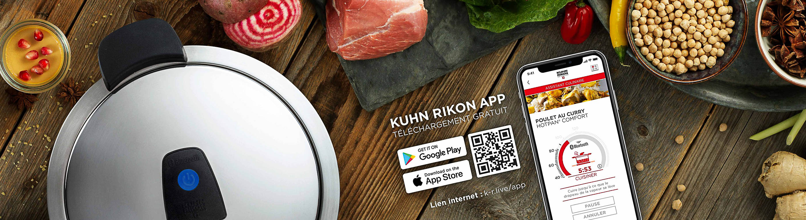 Le HOTPAN® Comfort révolutionnent l’univers de la cuisson et vous aident à préparer vos plats. Avec l’appli Kuhn Rikon, vous bénéficiez de l’expertise d’un vrai chef. Fini l’angoisse de connaître la puissance idéale de la plaque de cuisson ou le temps de cuisson résiduel. Les technologies intelligentes font le travail à votre place.