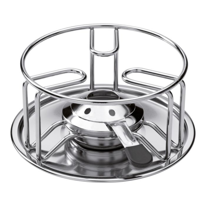 - Avec le caquelon/la marmite à fondue, le réchaud sert à préparer/garder au chaud les fondues au fromage et à la viande