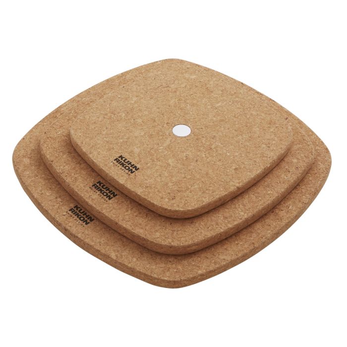 Les dessous-de-plats en liège, matériau durable, de la ligne Smart & Compact de Kuhn Rikon sont aimantés et protègent les surfaces des fonds du faitout brûlants et des rayures. Ils s'avèrent parfaits pour servir les aliments contenus dans les poêles et les casseroles avec les deux mains et sans effort. L'aimant intégré maintient le fond de la marmite et le dessous-de-plat ensemble.