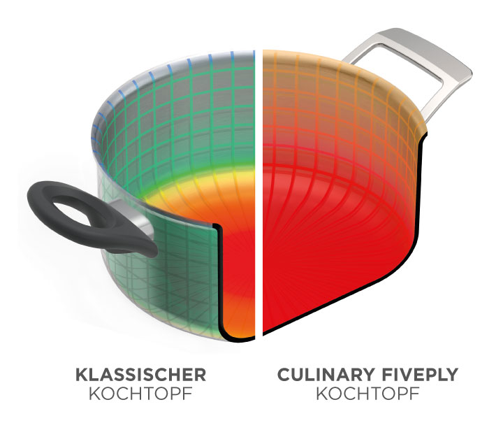 Entdecken Sie das neue Mehrschicht-Kochgeschirr CULINARY FIVEPLY. Erleben Sie eine unübertroffene Wärmeverteilung bis zum Pfannenrand. Begeistern Sie Ihre Gäste mit Gerichten rund um den Globus – und herausragenden Kochresultaten.