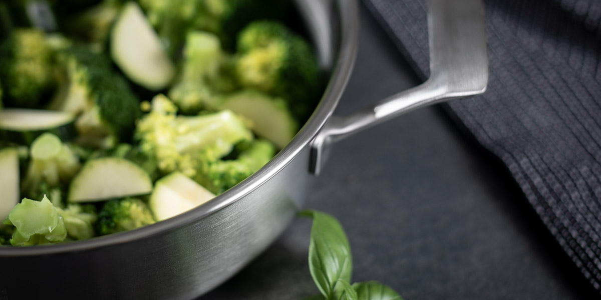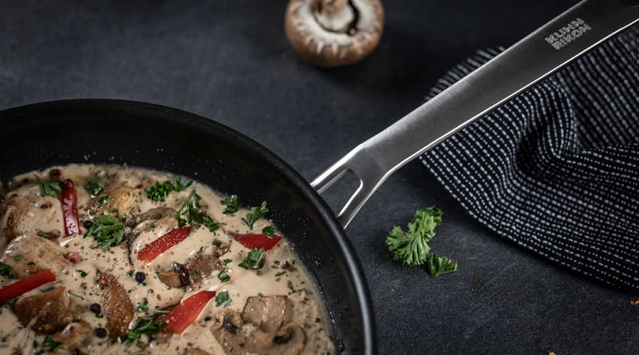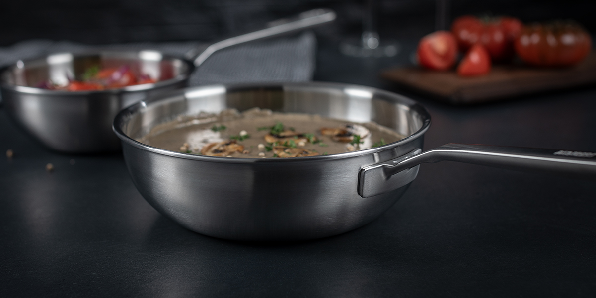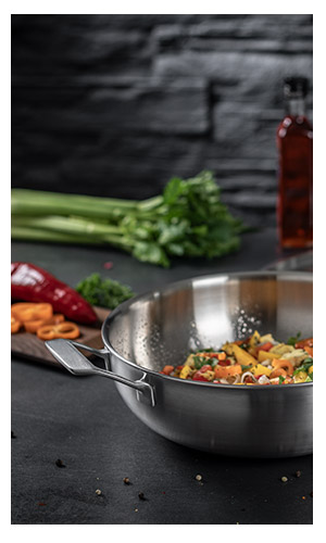 Besonders One Pot-Gerichte und Speisen mit Saucen profitieren von der randhohen Wärmeverteilung. Denn CULINARY FIVEPLY bringt dicke Schichten in Ihre Pfanne – und nicht auf Ihre Saucen. Sagen Sie eingedickten Saucen-Schichten auf Wiedersehen und servieren Sie optische Highlights.