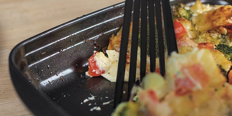 Dank der Beschichtung ist stundenlanges Einweichen nicht mehr nötig. Die Auflaufform wird mit wenig Spülmittel schnell wieder sauber.