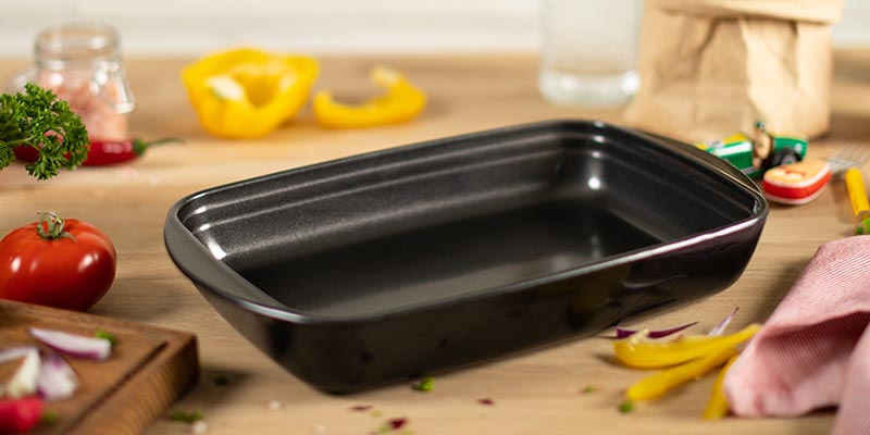 Aufläufe und Kuchen bleiben in der beschichteten Auflaufform nicht kleben. Mit den Griffen ist die Handhabung sehr angenehm.