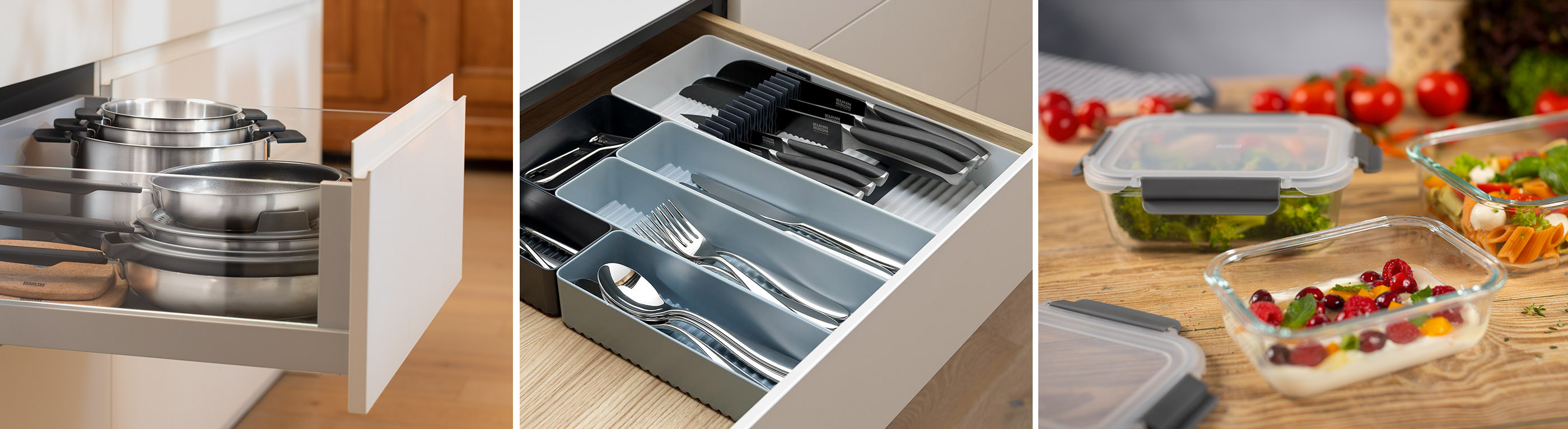 Jeder kennt es: Kaum hat man die Küche aufgeräumt, herrscht schon wieder Chaos. Jetzt ist genau der richtige Zeitpunkt für einen Frühlingsputz in der Küche und für mehr Ordnung in den Küchenschränken. Mit den stapelbaren Smart & Compact Kochtöpfen und Bratpfannen sparst du Platz und mit den Wave Modulen bringst du Ordnung in die Küchenschublade.