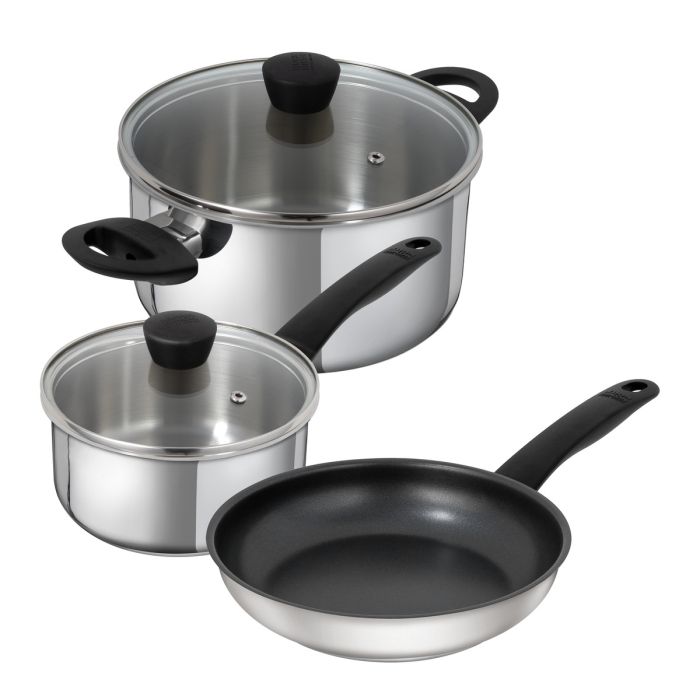 Su gruesa base almacena el calor de forma óptima y lo distribuye uniformemente por todo el alimento. El mango ergonómico de baquelita permanece frío incluso a altas temperaturas. Para que el cocinero sepa en todo momento lo que sucede en el interior de la olla, esta cuenta con una tapa de cristal que permite ver los alimentos que se están cocinando sin necesidad de levantarla. La facilidad de limpieza ahorra tiempo y agua y es otro atractivo aspecto positivo de esta práctica bateria de cocina.