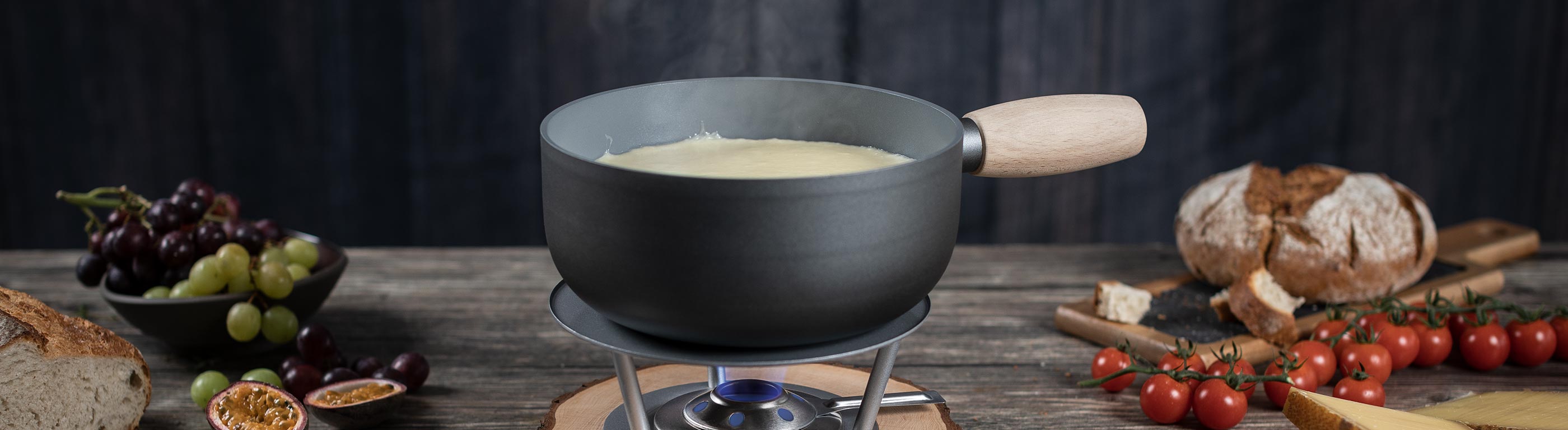 Nos caquelons en aluminium chauffent rapidement. Le fond en métal assure une diffusion optimale de la chaleur et empêche la fondue de brûler. La jolie poignée en bois de hêtre offre une prise en main agréable. Le caquelon Alpine convient pour 4 à 6 personnes, une taille idéale pour passer un excellent moment entre amis ou en famille. Découvrez maintenant nos caquelons haut de gamme pour vivre une expérience de dégustation de votre fondue pendant longtemps.