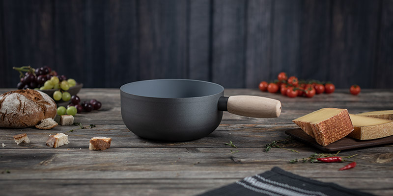 Spécialistes des caquelons, nous sommes fiers de vous présenter notre nouveau modèle Alpine fabriqué en aluminium 100% recyclé. Un caquelon plus écologique et plus résistant que son équivalent en aluminium pur. Vous allez être conquis par la longévité et l’efficacité de notre caquelon. Votre prochaine soirée fondue sera écologique. Un vrai plaisir!