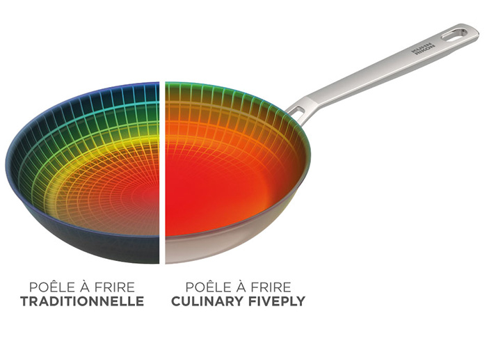 Découvrez la nouvelle batterie de cuisine multicouche CULINARY FIVEPLY. Profitez d'une répartition inégalée de la chaleur jusqu'au bord de la poêle. Enchantez vos invités avec des plats aux quatre coins du monde - et des résultats culinaires exceptionnels.