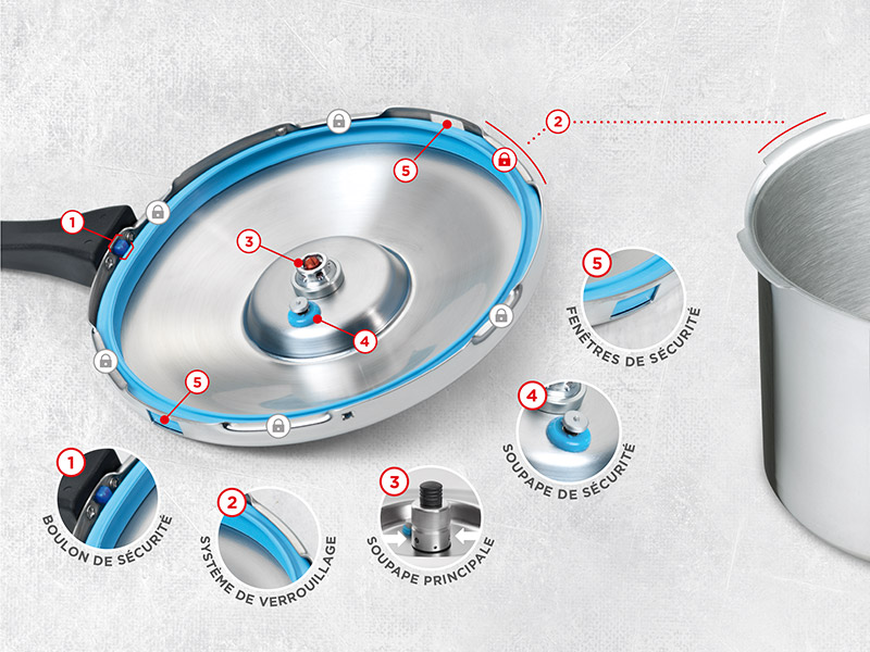 Grâce à des mécanismes innovants, l'autocuiseur DUROMATIC® offre une quintuple sécurité pour un plaisir de cuisiner sans crainte.