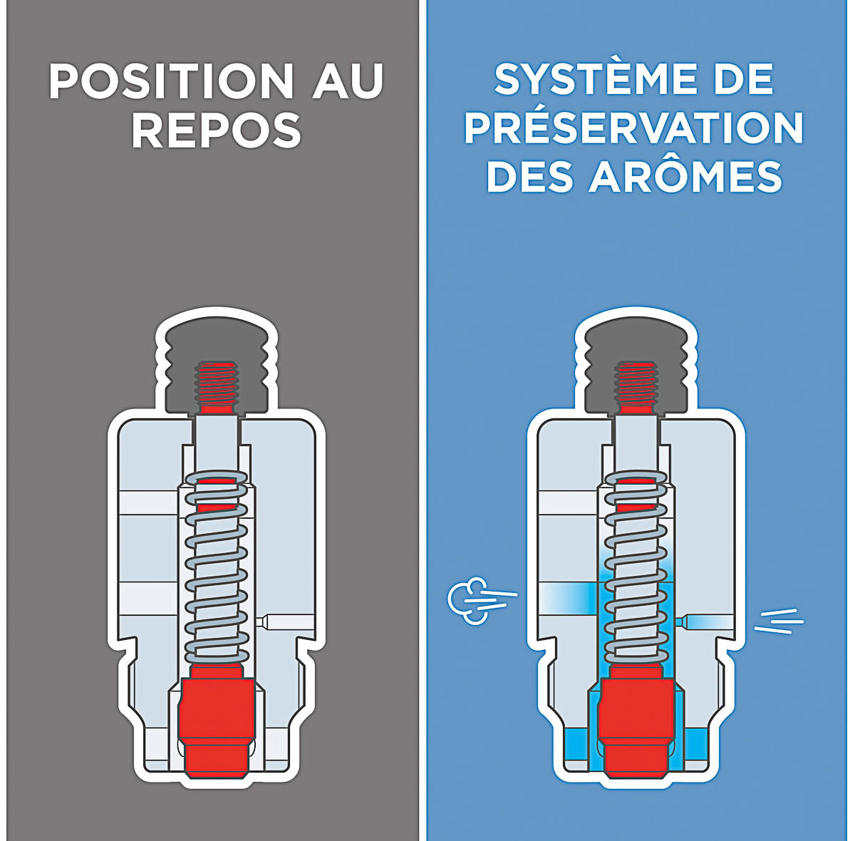 Lorsque la surpression atteint 1,8 bar, la deuxième soupape de surpression située sous le capot de la soupape s'enclenche et expulse de la vapeur supplémentaire.