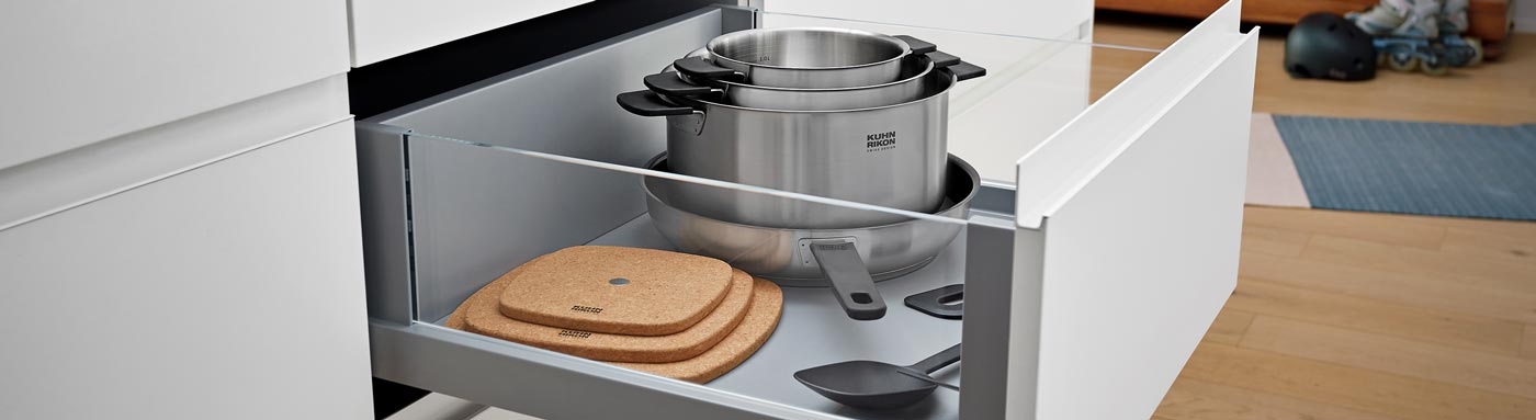 Pour trouver rapidement tout ce dont on a besoin, mieux vaut avoir une cuisine bien organisée. Dans ce contexte, les solutions astucieuses pour l'organisation intérieure des tiroirs s’avèrent indispensables. Surtout lorsqu'ils sont aussi bien pensés et agencés que le système modulaire «Wave», lauréat du prix Red Dot. Il ne laisse aucune chance au désordre!