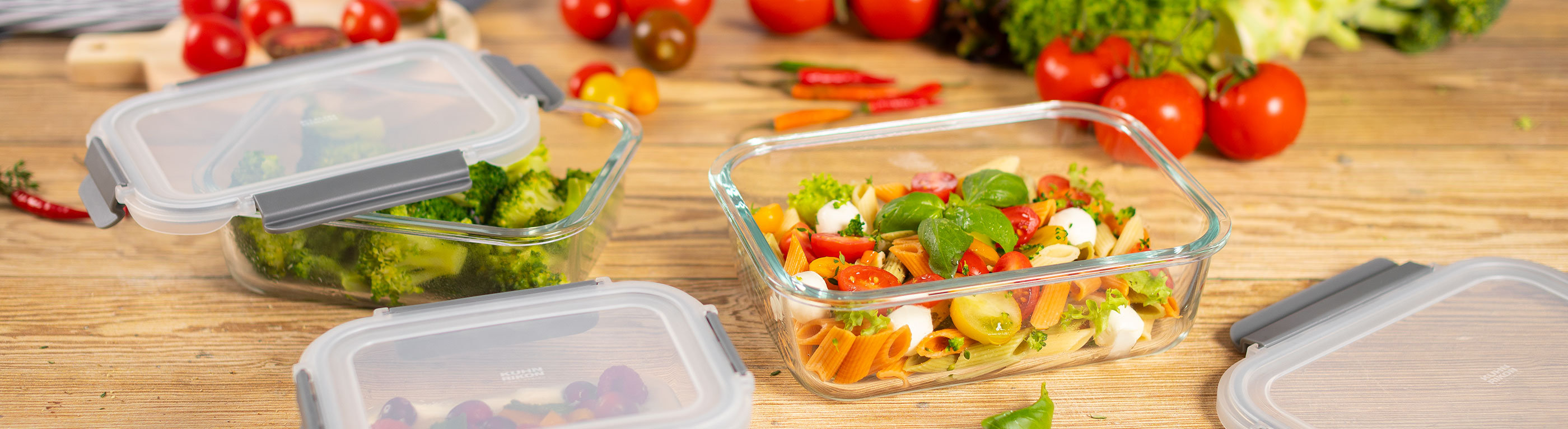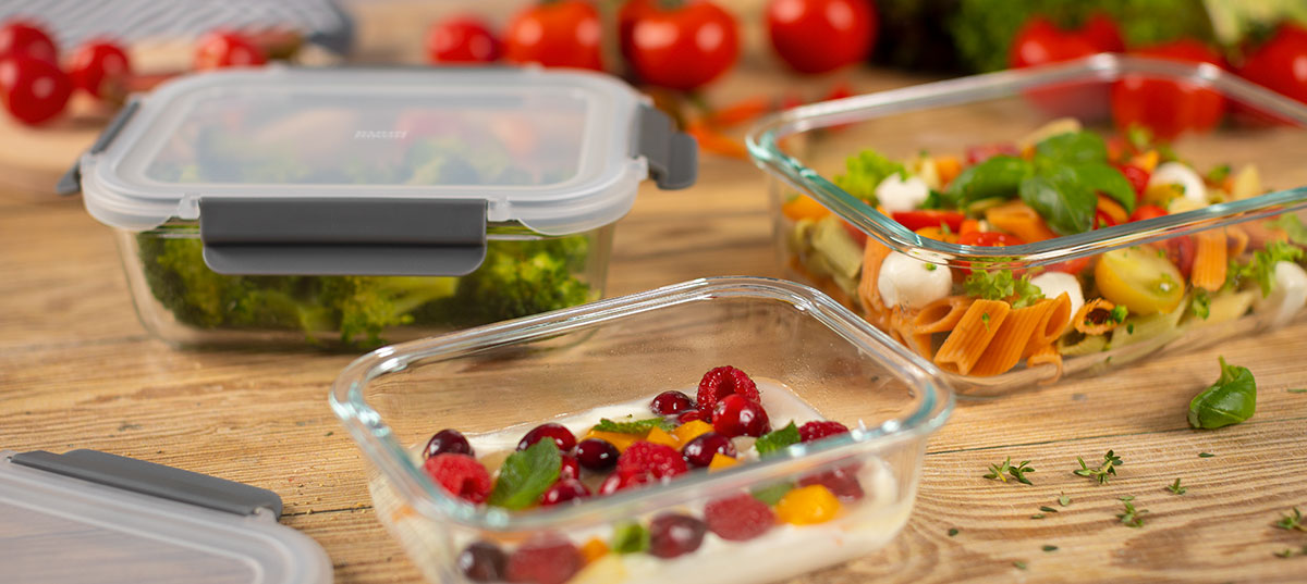 Le design ingénieux du couvercle protège les angles en verre du récipient de conservation. En plus, le contenu est immédiatement visible.