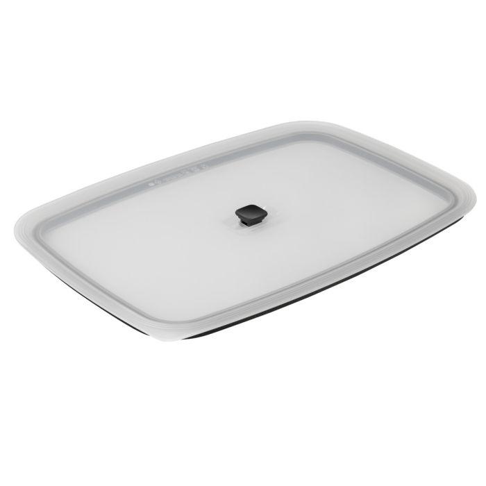La valve dans le couvercle permet à la chaleur résiduelle de s'échapper et assure un léger vide et une fermeture hermétique en appuyant vers le bas. Comme le couvercle ne dispose pas de clapets de fermeture latéraux, le moule doit toujours être stocké ou transporté à l'horizontale.