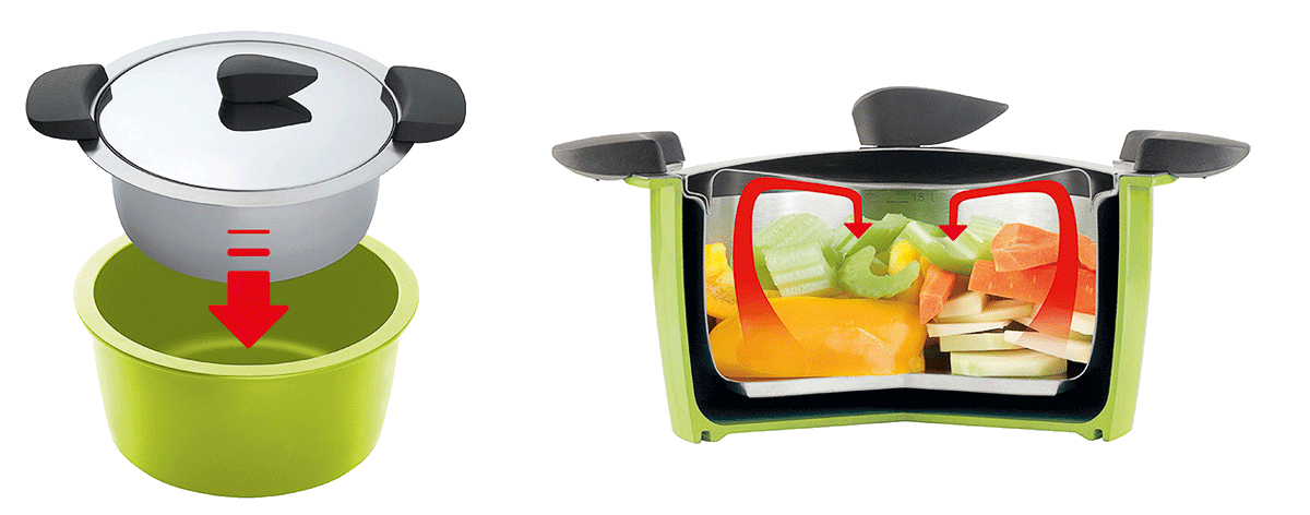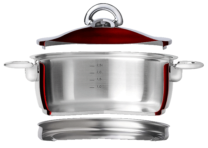 Le produit SWISS MADE se distingue par son esthétisme et sa fonctionnalité exceptionnelle. La batterie de cuisine économise jusqu’à 60% d’énergie et maintient les plats au chaud pendant deux heures.