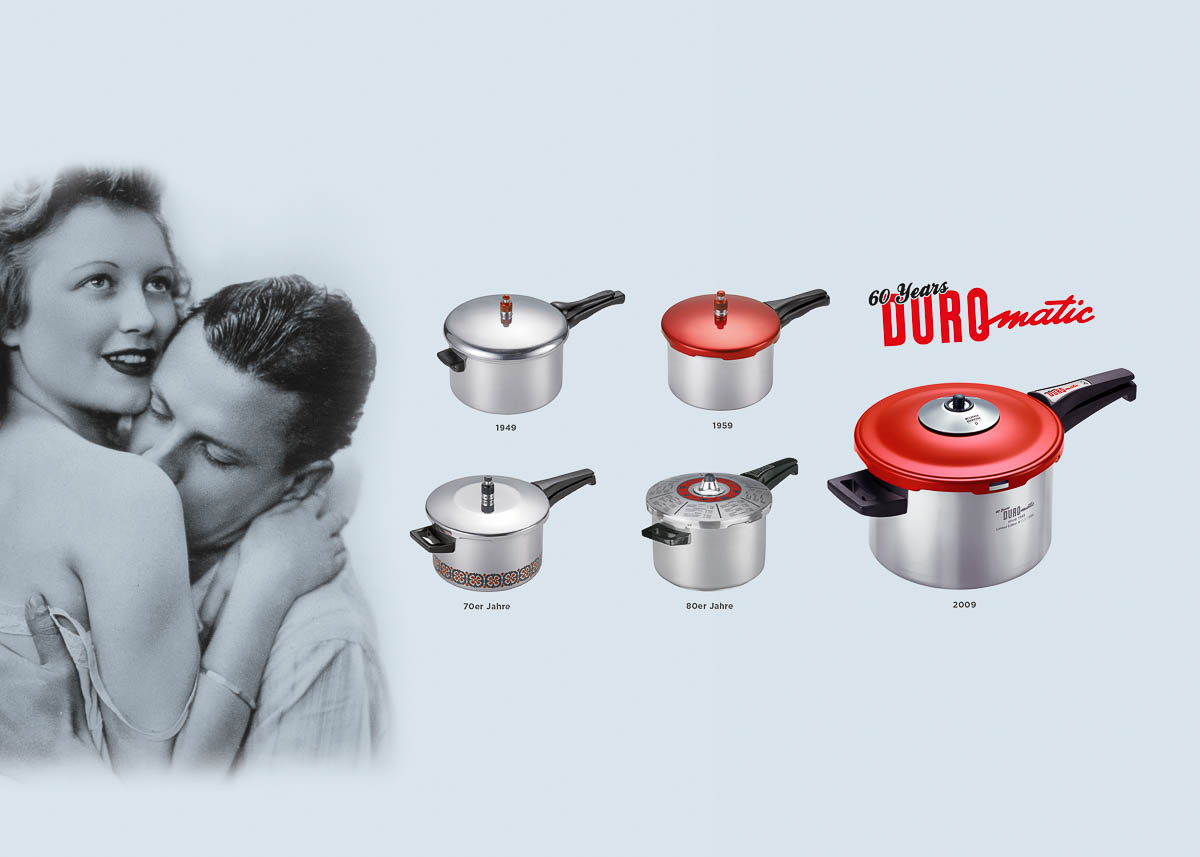 L’invention de Jacques Kuhn fête son 60e anniversaire. L’autocuiseur vapeur DUROMATIC® est utilisé dans presque chaque cuisine suisse. Depuis son lancement en 1949, plus de 10 millions d’autocuiseurs DUROMATIC® ont été vendus.