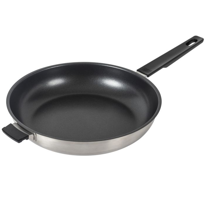 Intelligente, compacte et élégante: les poêles à frire de la gamme Smart & Compact ont des atouts indéniables par rapport aux modèles concurrents. Grâce au design moderne et ingénieux de leur poignée, les poêles à frire peuvent être empilées et économiser ainsi un précieux espace. Le revêtement antiadhésif est protégé, ce qui rend l’achat de protections pour les poêles superflu. La poignée en silicone a une forme ergonomique pour une prise en main agréable et réduit la diffusion de la chaleur. La petite poignée d'appoint s’avère particulièrement judicieuse lors du transport de contenus plus lourds.