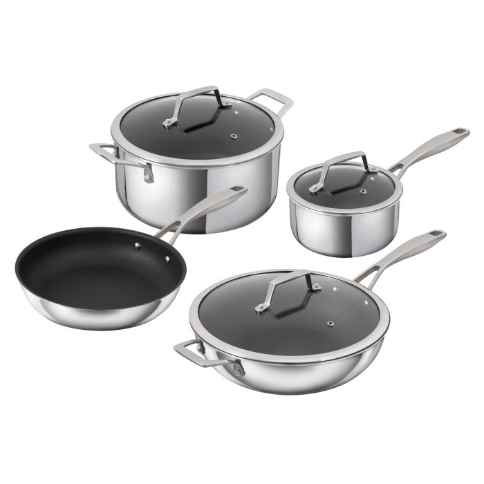 - See what’s cooking with the glass lids which have a large, easy-to-lift handle.
